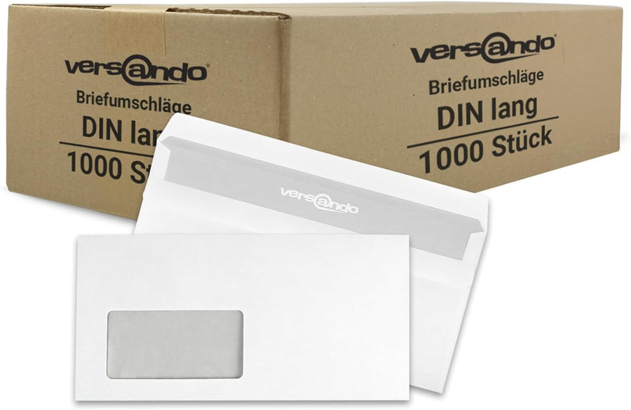 - 1.000 Stück (= 1 Karton)Format DIN lang mit Fenster 110 mm x 220 mm Grammatur 75g/m² selbstklebend