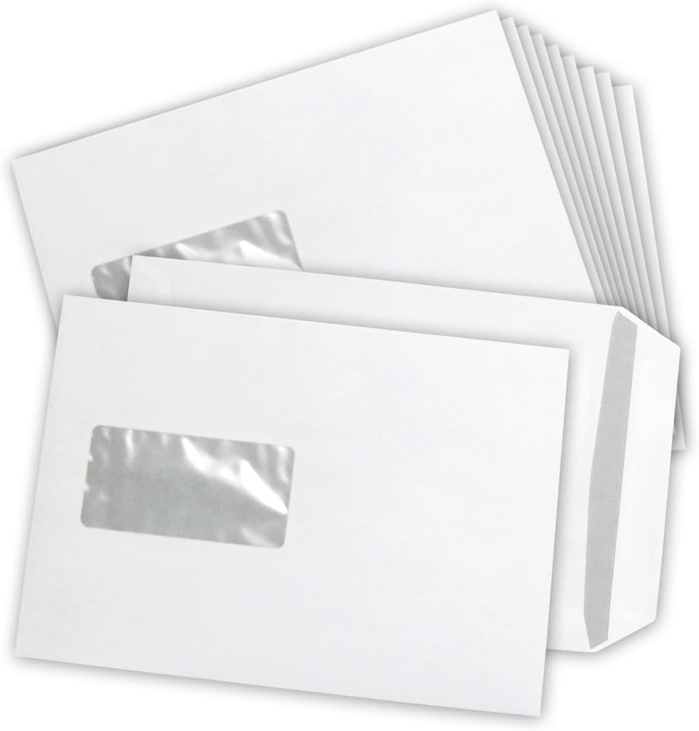 - 500 Stück (= 1 Karton) Format DIN C5 mit Fenster 162mm x 229 mm Grammatur 90g/m² selbstklebend