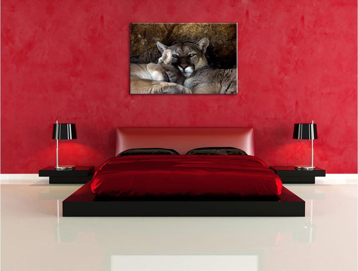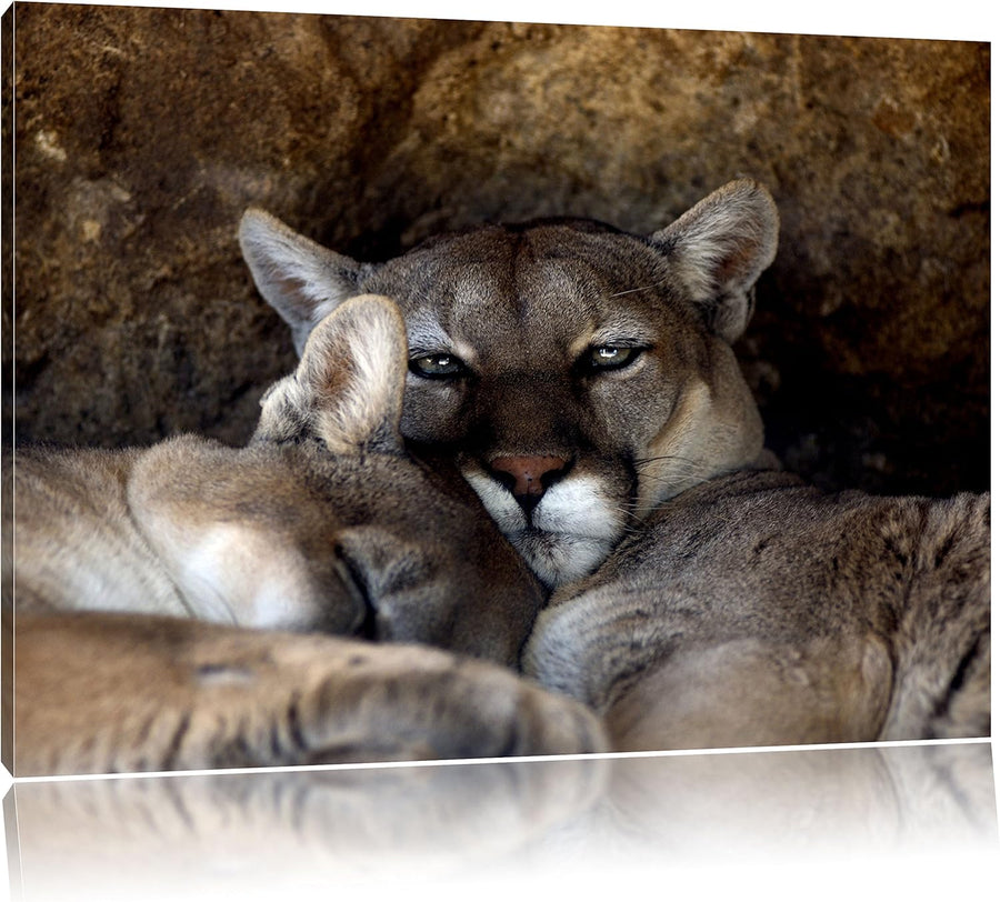 verschlafenes Puma Paar, Format: 100x70 auf Leinwand, XXL riesige Bilder fertig gerahmt mit Keilrahm