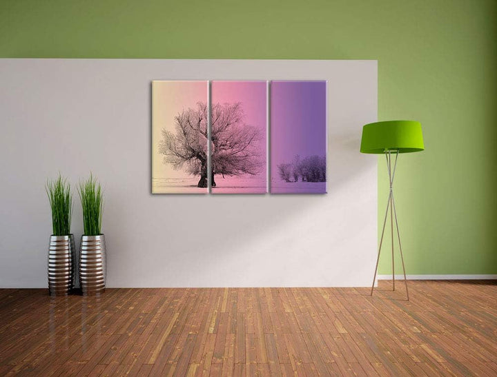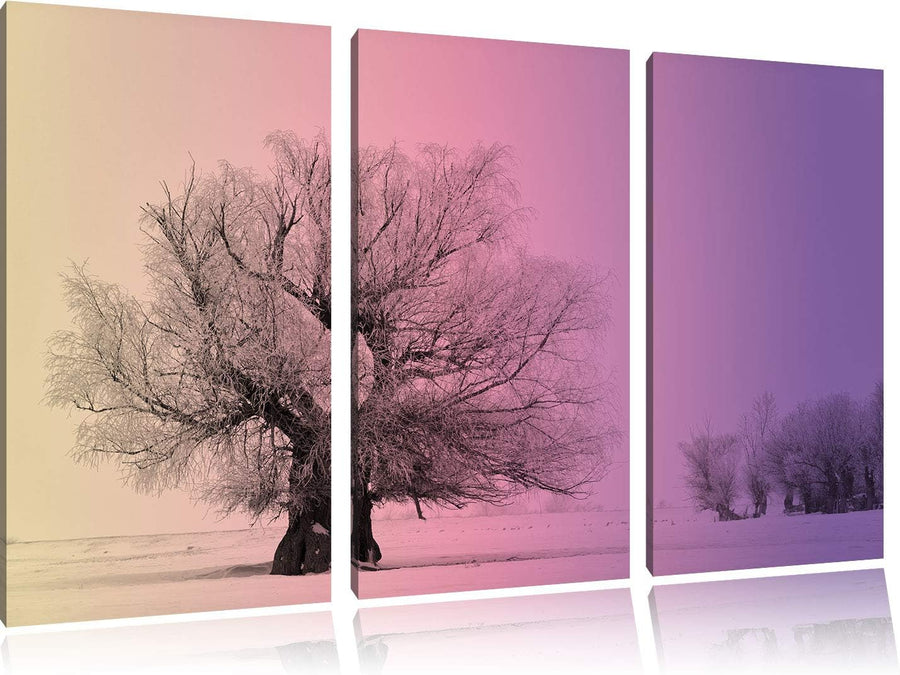 verschneite Bäume im Nebel schwarz/weiss 3-Teiler Leinwandbild 120x80 Bild auf Leinwand, XXL riesige