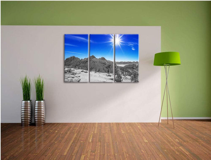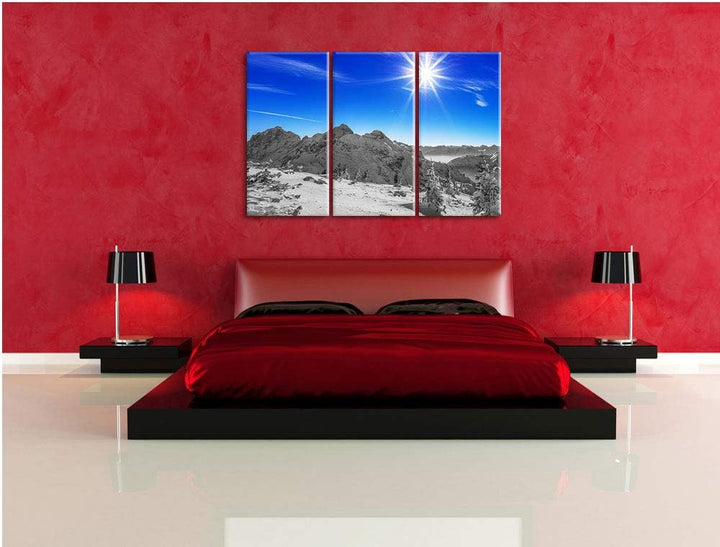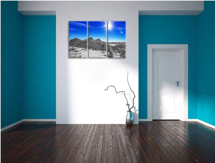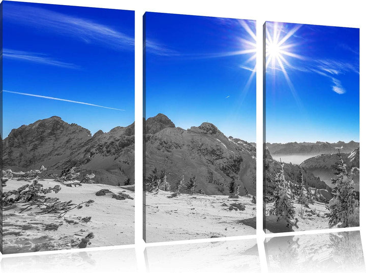 Verschneites Tannheimer Tal schwarz/weiss 3-Teiler Leinwandbild 120x80 Bild auf Leinwand, XXL riesig