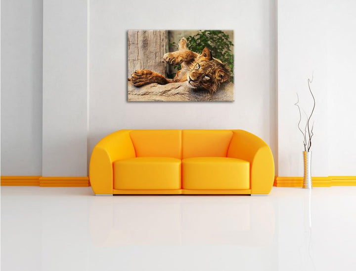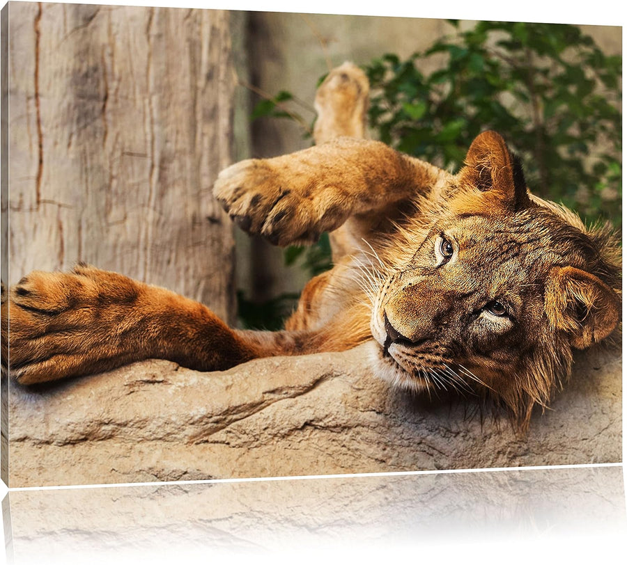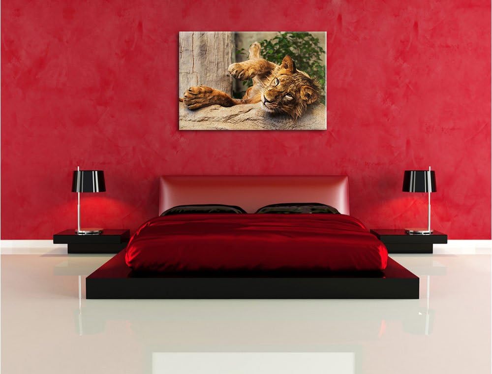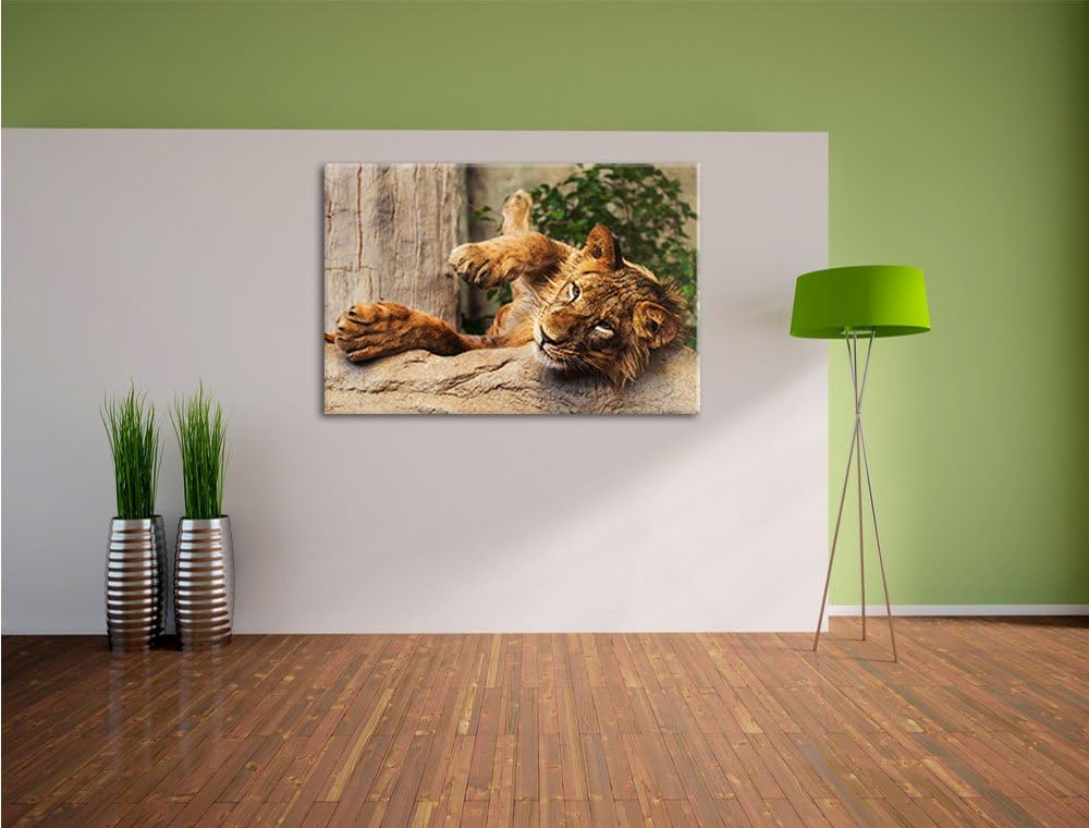 verspielter kleiner Löwe, Format: 100x70 auf Leinwand, XXL riesige Bilder fertig gerahmt mit Keilrah
