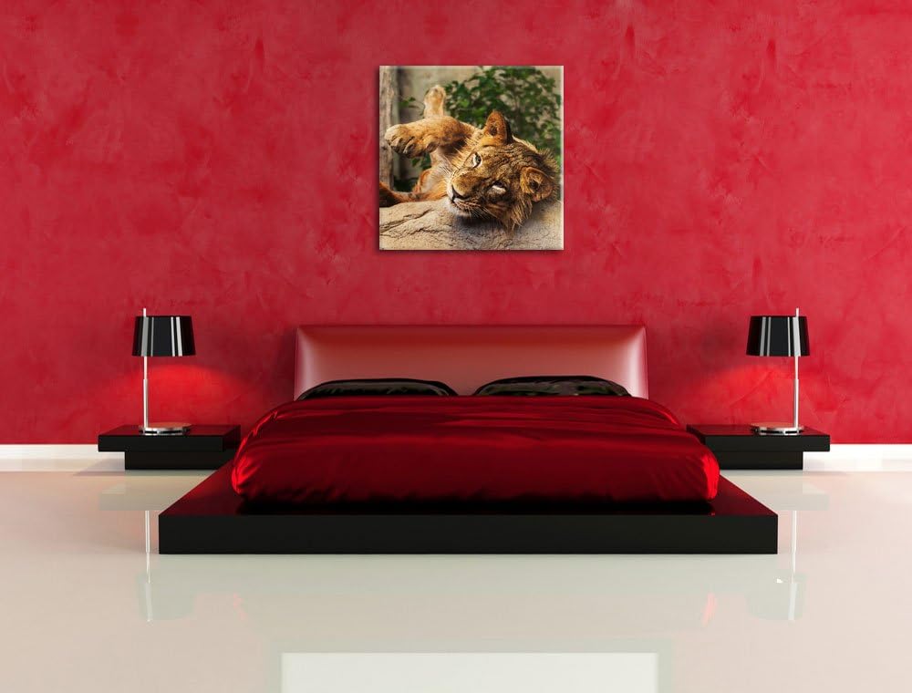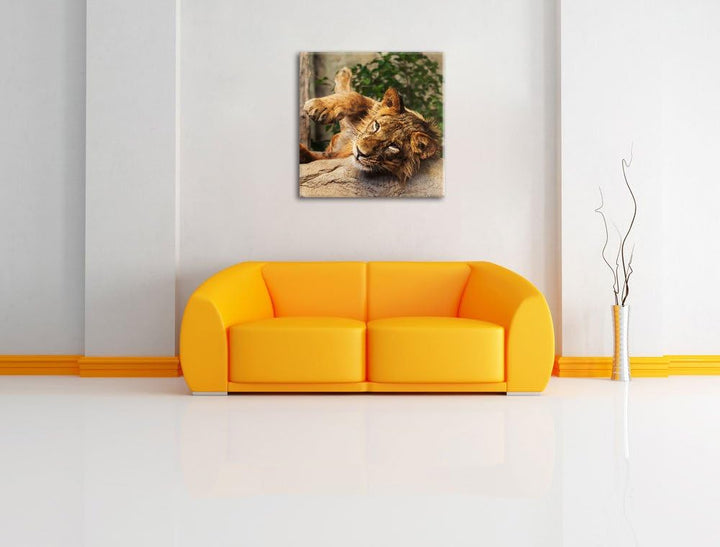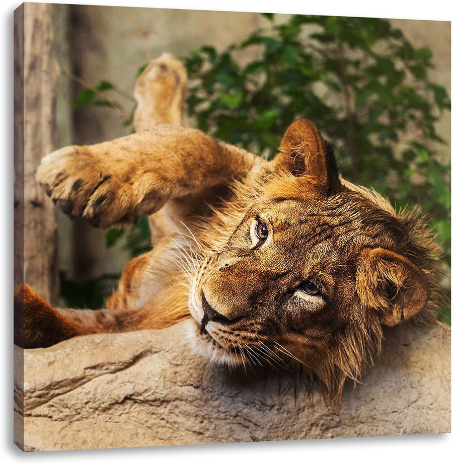 verspielter kleiner Löwe, Format: 70x70 auf Leinwand, XXL riesige Bilder fertig gerahmt mit Keilrahm