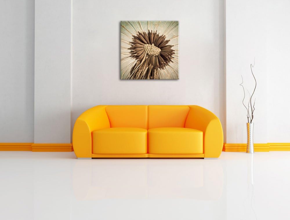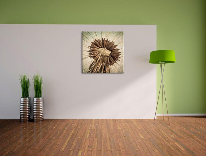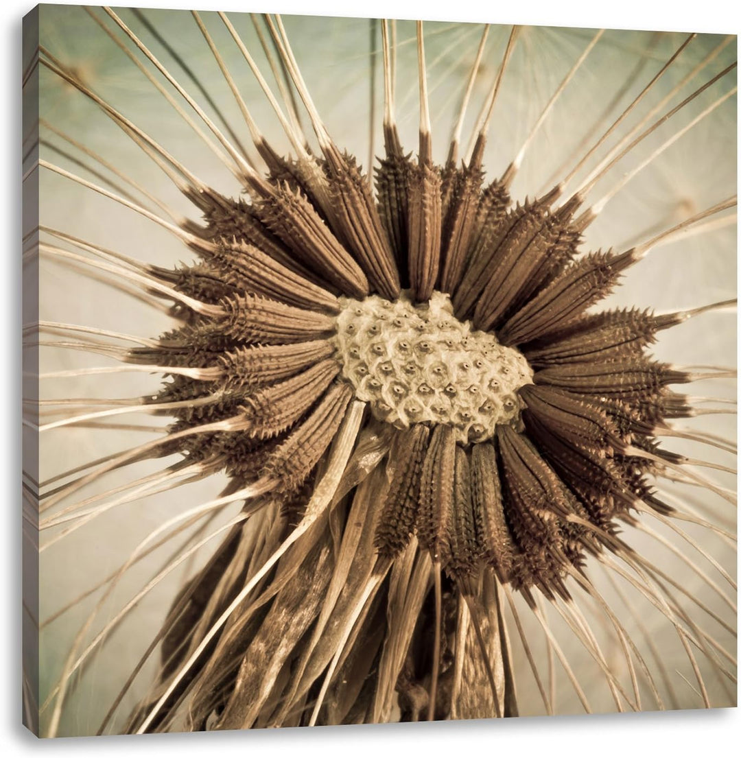 Vertrocknete Pusteblume, Format: 70x70 auf Leinwand, XXL riesige Bilder fertig gerahmt mit Keilrahme
