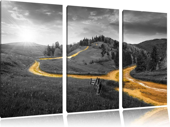 Verträumte Berglandschaft schwarz/weiss 3-Teiler Leinwandbild 120x80 Bild auf Leinwand, XXL riesige