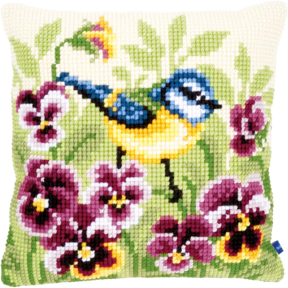 Vervaco Kreuzstichkissen Blaumeise Kreuzstichpackung Stickkissen vorgezeichnet, Stramin, weiss, 40 x