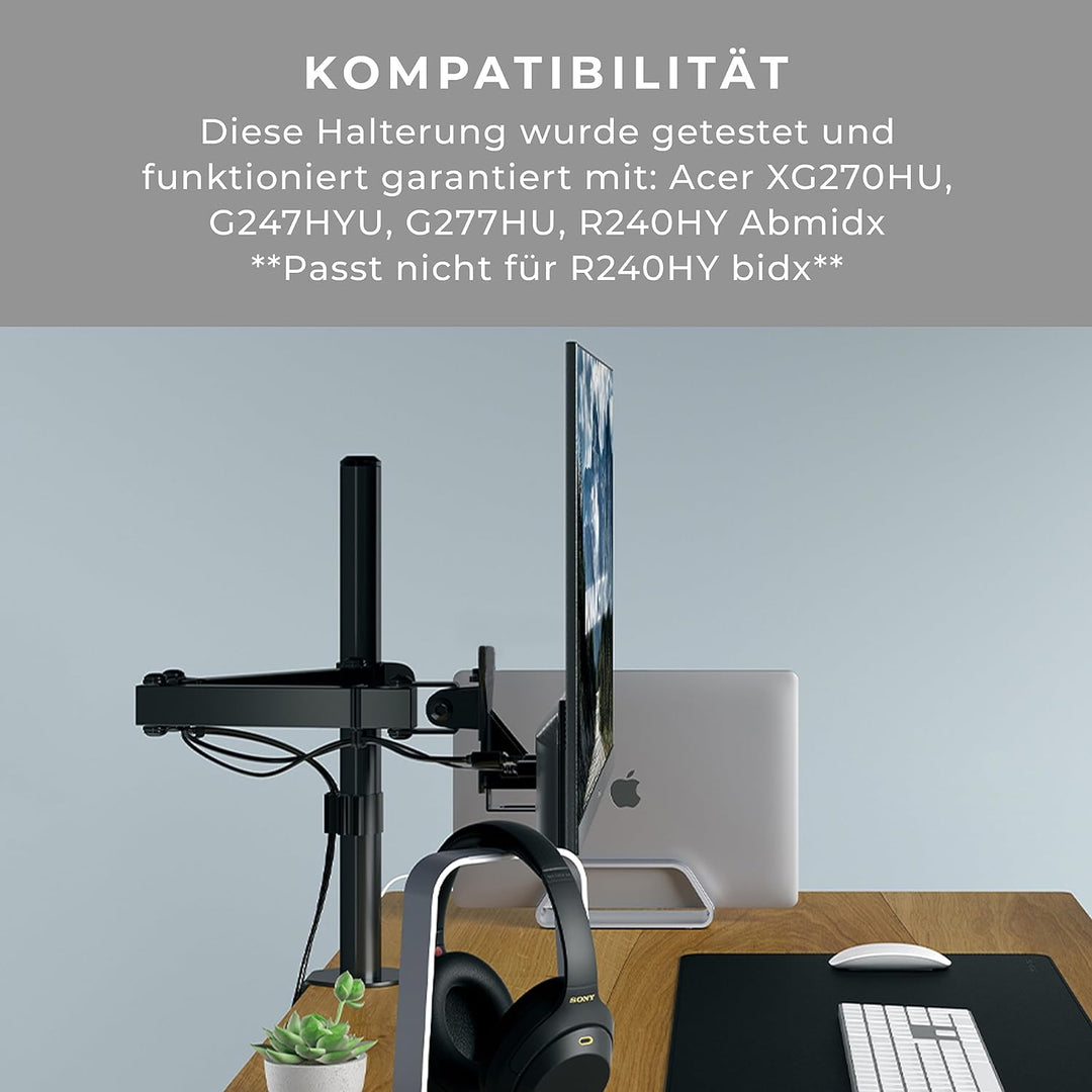 - Passend für bestimmte Acer-Monitore: Diese Halterung wurde getestet und funktioniert garantiert mit: Acer XG270HU, G247HYU, G277HU, R240HY Abmidx (passt nicht für R240HY bidx). Entfernen Sie die GESAMTE Monitorbasis und lassen Sie dieses Modell direkt