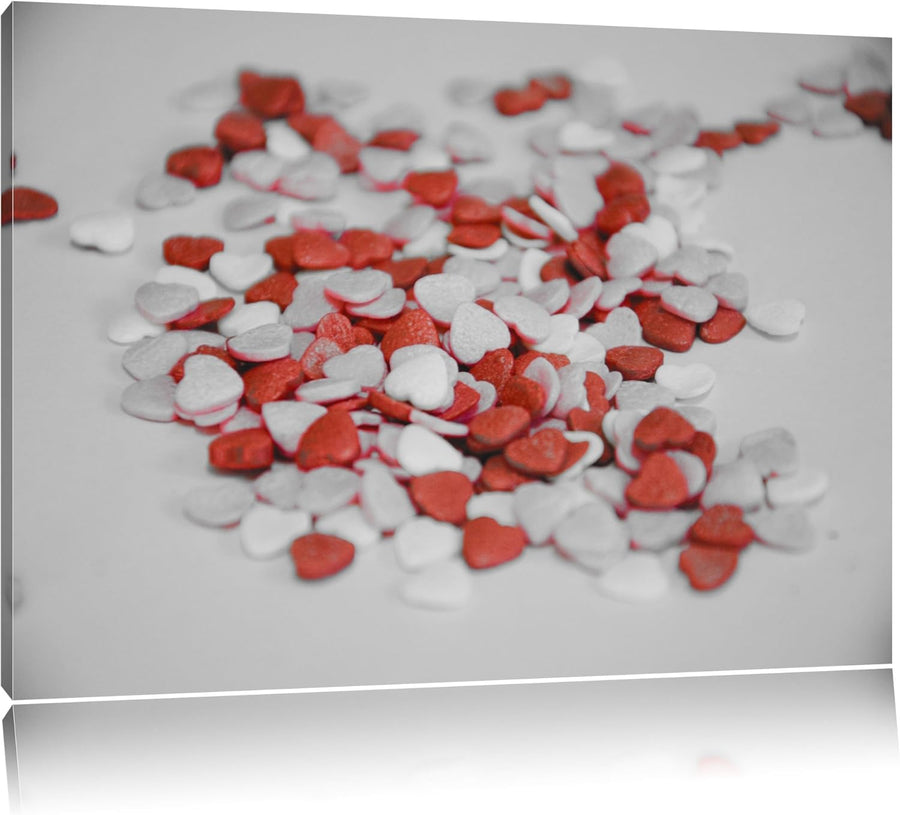 viele kleine Herzen schwarz/weiss auf Leinwand, XXL riesige Bilder fertig gerahmt mit Keilrahmen, Ku