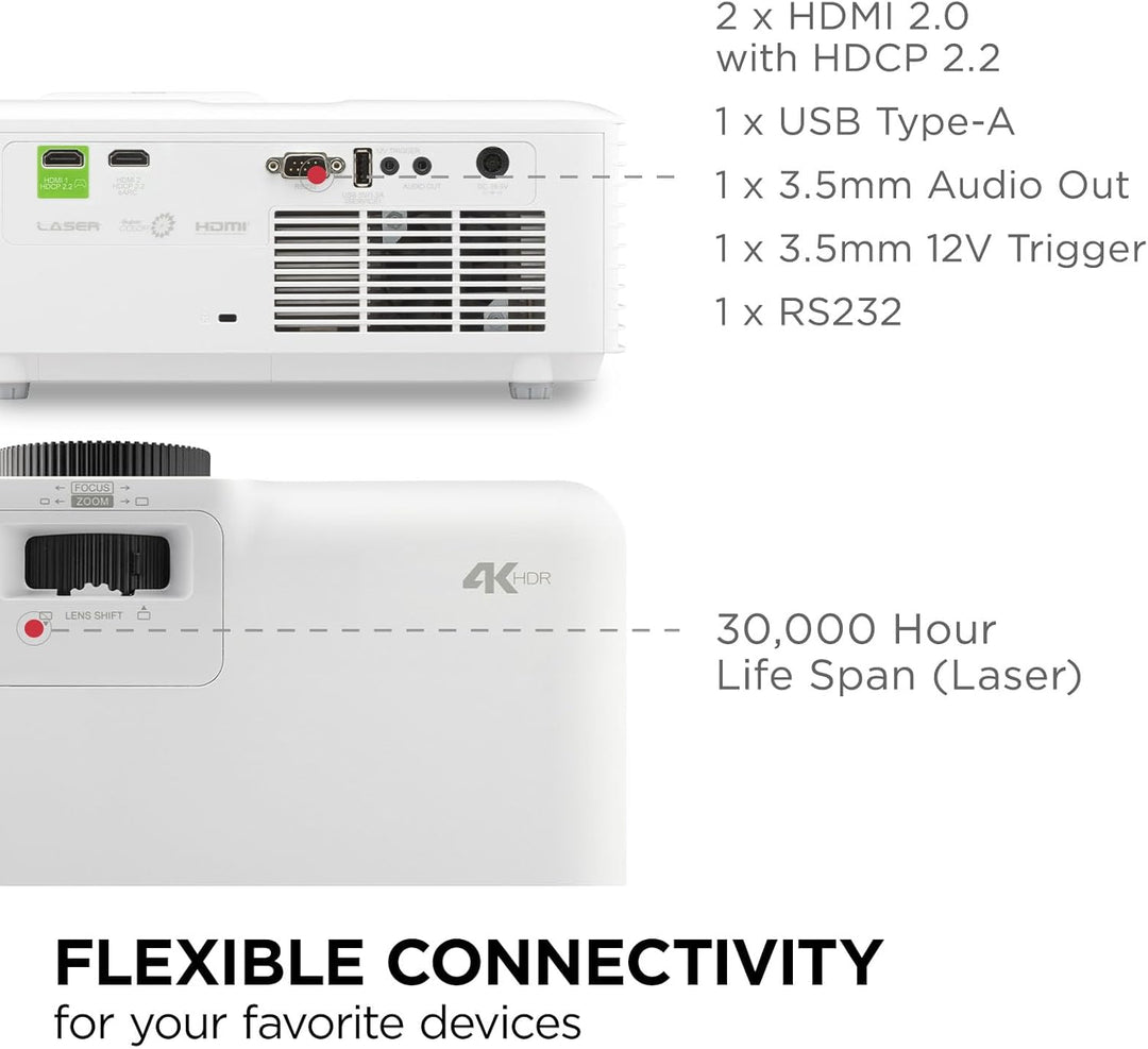 ViewSonic LX700-4K 4K Laser Projektor für Xbox Gaming und Heimkino, bis zu 300" grosses Bild, 3500 L