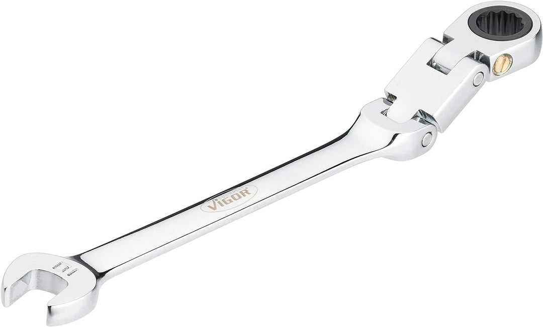 Vigor Ratschen-Ring-Maulschlüssel (Doppelgelenk, feinverzahnte Ratschenmechanik an der Ringseite) V6