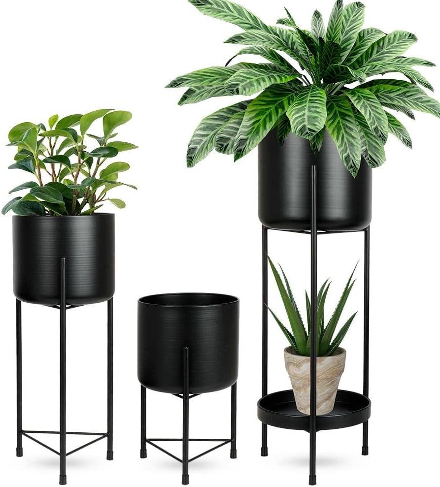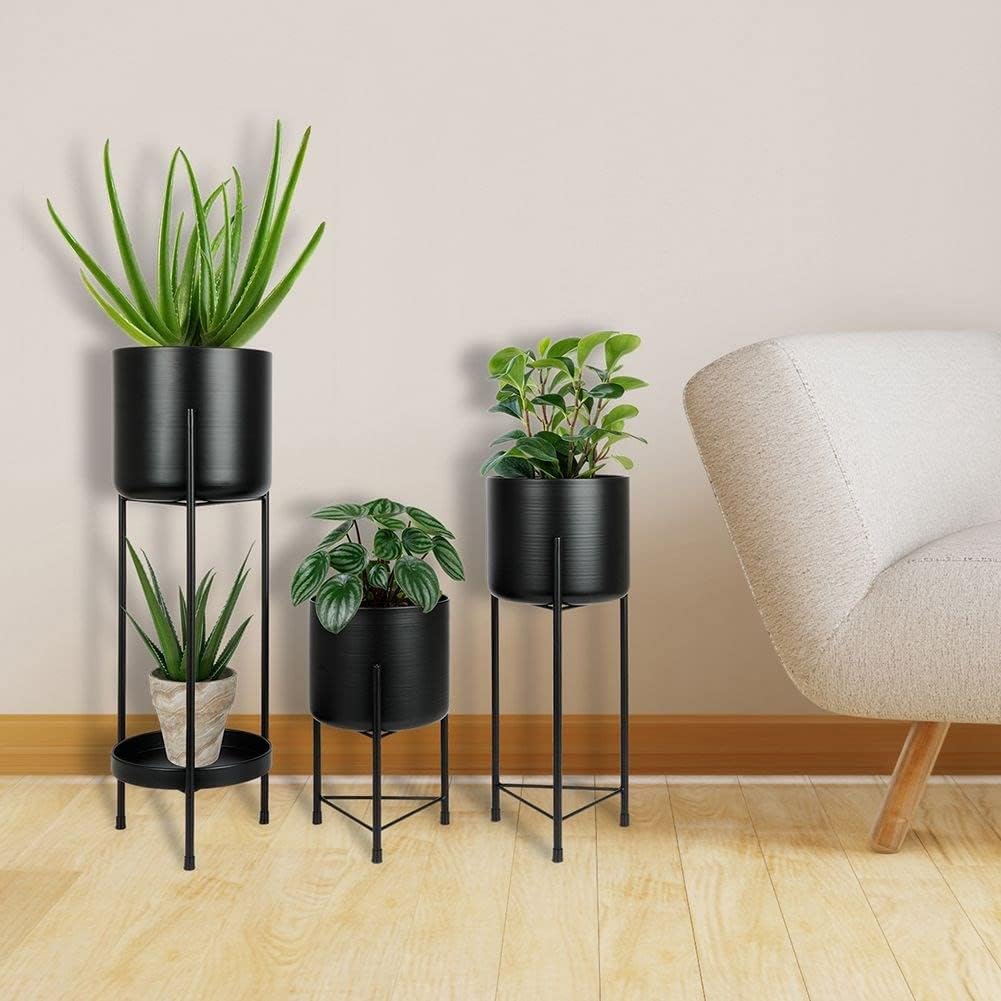 - SOLIDE VERARBEITET - Die Pflanzenständer wurden aus schwarzem Metall gefertigt. Sie sind auf einer schwarzen Metallstruktur befestigt. Der Übertopf kann frei vom Ständer abgenommen und bei Bedarf bewegt werden.