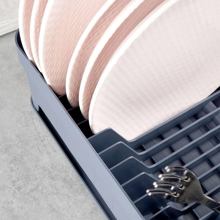- ROBUST - hergestellt aus hochwertigem Kunststoff in grauer Farbe. Das Abtropfgestell ist mit einer abnehmbaren grauen Gummischale ausgestattet.