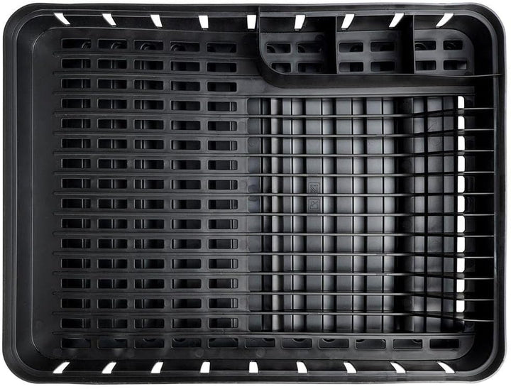 - ROBUST - hergestellt aus hochwertigem Kunststoff in schwarzer Farbe. Das Abtropfgestell ist mit einer abnehmbaren schwarzen Gummischale ausgestattet.