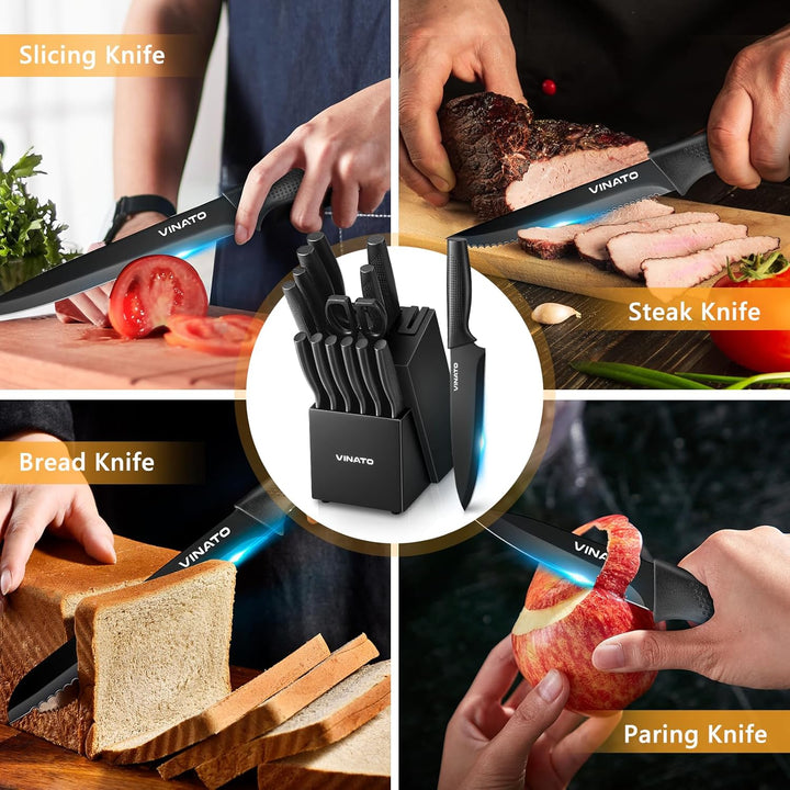 - 【Service & Garantie】Jedes messerblock von VINATO unterliegt einer strengen Qualitätskontrolle und ist einfach und schnell zu reinigen. Hochwertiges messer block ist perfektes Geschenk für Valentinstag, Hochzeit, Geburtstag, Hauseinweihung,