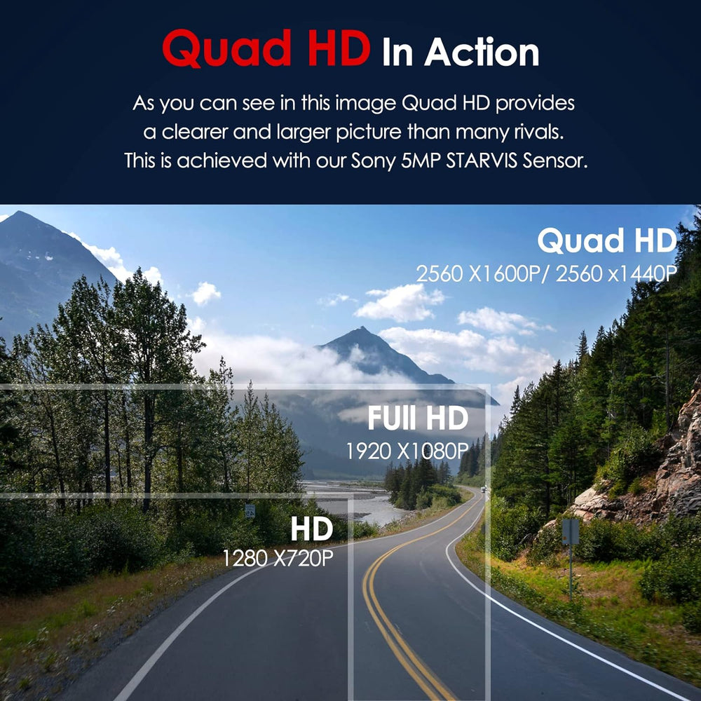 - 【 2560x1600P & 5MP Sensor 】 A119 V3 Dashcam verfügt über einen fortschrittlichen 5MP IMX355 Sensor und F1.6 7G Objektiv, bei 1600p HD Auflösung und 30 Bildern pro Sekunde, die Auto-Kamera schiesst in atemberaubender Qualität während des Tages und in der Nacht, wodurch es einfacher ist, Nummernschilder zu lesen und Vorfälle mit hervorragender Klarheit zu erfassen. Der 140-Grad-Winkel verhindert eine Fischaugenansicht und bietet dennoch eine breite Sicht auf die Strasse.