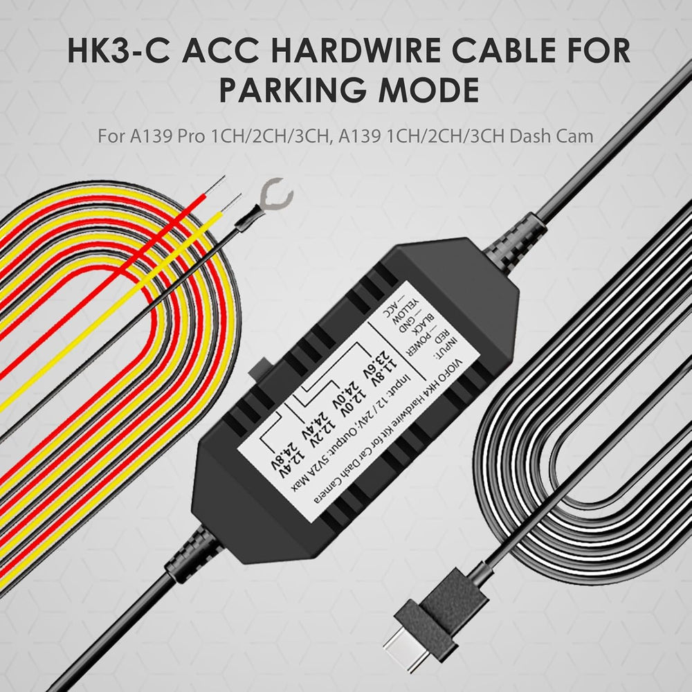 - 12 / 24V-kompatibel - HK3 ACC Hardwire-Kits verbinden die Kamera direkt mit dem Auto, LKW, Bus, SUV oder dem grossen Rig, um eine kontinuierliche Stromversorgung zu gewährleisten. Sie akzeptiert Spannung von allen Fahrzeugtypen, die mit 12 - 24V betrieben werden.