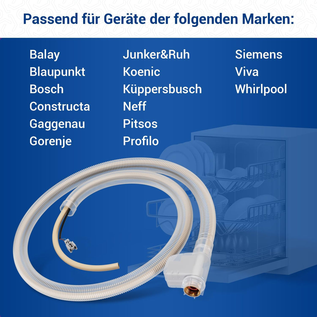 - PASSEND FÜR: Dieser Zulaufschlauch Aquastop bzw. Wasserstopp Spülmaschine passt für Geschirrspüler von Balay, Blaupunkt, Bosch, Constructa, Gaggenau, Gorenje, Junker&Ruh, Koenic, Küppersbusch, Neff, Siemens, Viva, Whirlpool