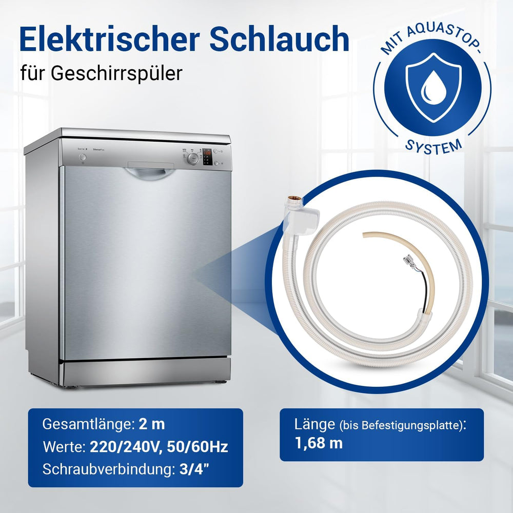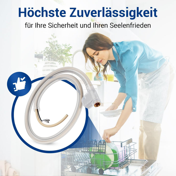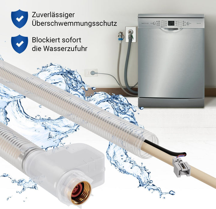 - 1A QUALITÄT: Wir bieten einen hochwertigen Sicherheitszulaufschlauch bzw. Wasserschlauch 3/4 Zoll mit elektrischem Anschluss inkl. Wasserstopp speziell für Spülmaschinen an