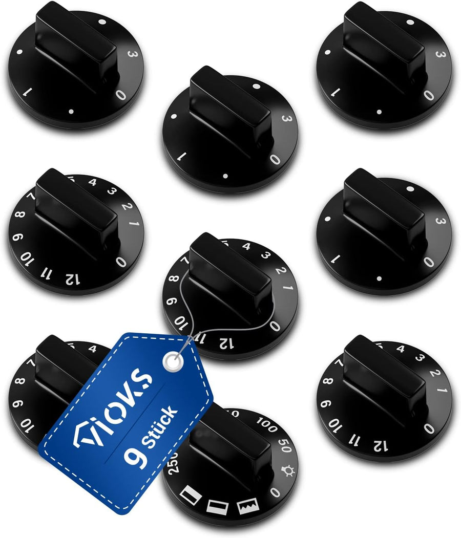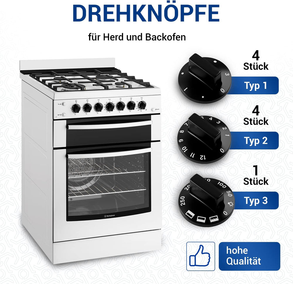- SET: Das Drehknopf Set beinhaltet: 4 Knebel für 7 - Takt - Schalter , 4 Knebel für Automatikkochplatten , 1 Knebel für Backofen