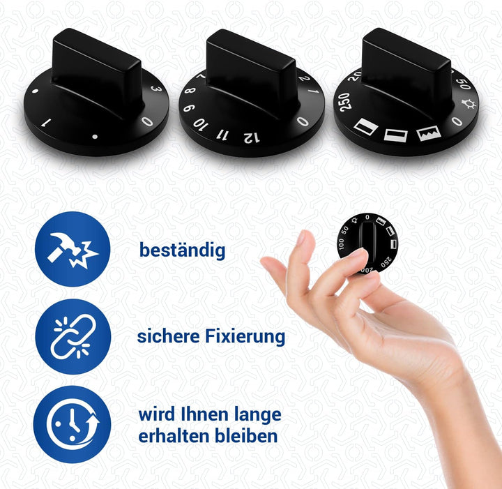 - GENAUE ANZEIGE: Unsere Knöpfe & Schalter für Backöfen & Herde sind mit genauer und eindeutiger Werteanzeige versehen, damit Sie die benötigte Temperatur oder Modus bequem einstellen können