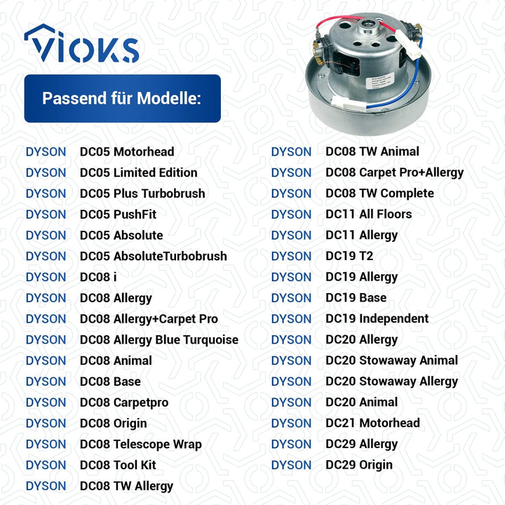 - 🔵 𝐒𝐓𝐀𝐁𝐈𝐋: VIOKS Staubsauger Motor / YDK Motor / Ersatzteile DC08 / Dyson DC29 Ersatzteile ist mit Thermostat und gewährleistet Ihrem Dyson DC Staubsauger / Dyson DC19 / Dyson DC08 / Staubsauger Turbine gute Leistung