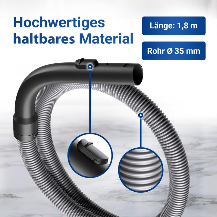 - DETAILS: Unser Ersatz für Miеle Schlauch Staubsauger hat Merkmale - Länge: 1,8 m, Farbe: silbern, Material: Kunststoff, Griffrohrdurchmesser: 35 mm aussen (konisch)