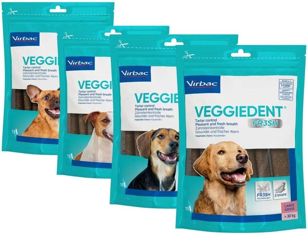 - VeggieDent Kaustreifen mit Fr3sh Technologie helfen, einen frischen und gesunden Atem zu erhalten. VeggieDent Kaustreifen besitzen die innovative Z-Form, die Ihrem Hund ein einfaches Festhalten und Kauen ermöglicht.