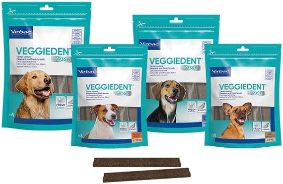 - Fütterungshinweis: Geben Sie Ihrem Hund 1 VeggieDent Kaustreifen täglich oder wie vom Tierarzt empfohlen. Frisches Trinkwasser sollte stets zur Verfügung stehen.