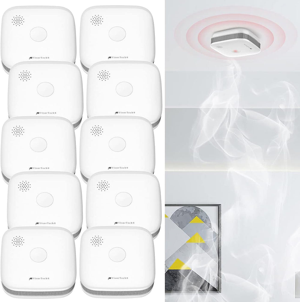 - 10er-Set Funk-Rauchwarnmelder RWM-470.f inklusive 10 Batterien Typ CR123A, Montagematerial und deutscher Anleitung. Funkvernetzter Rauchwarnmelder - Ausserdem relevant oder passend zu: Alarmanlage, vernetzt, Melder