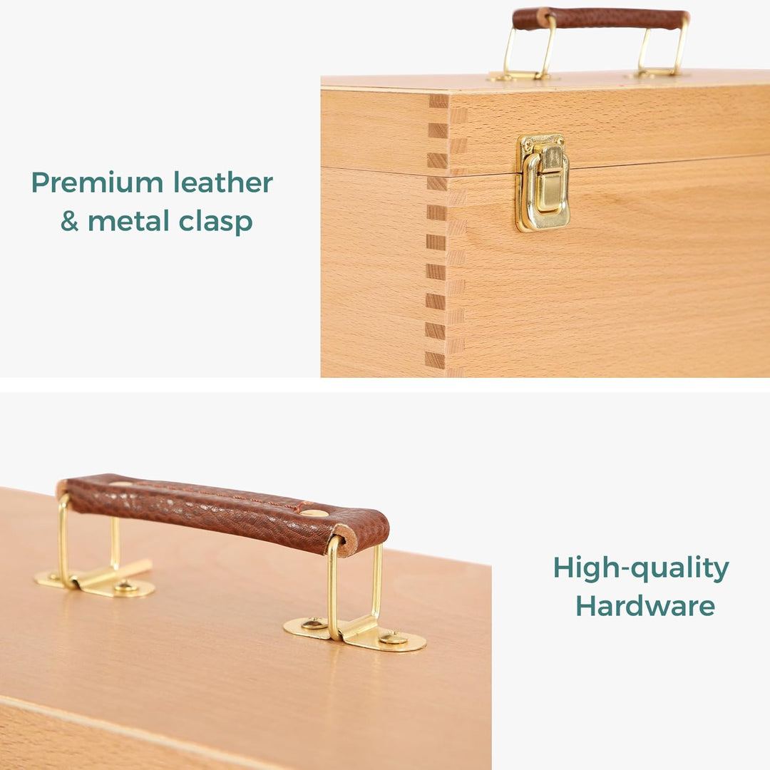 VISWIN 40 x 20 x 15.5 cm Grosse Kunstaufbewahrungsbox, Doppellagige Werkzeugkiste aus Massivem Buche