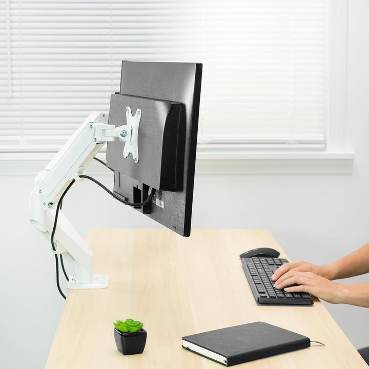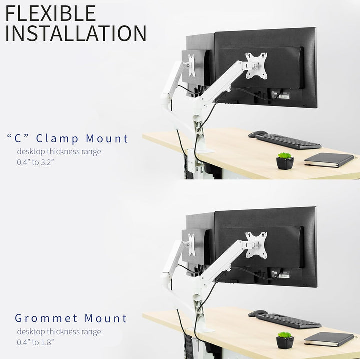 • Voll verstellbar: Die leistungsstarken pneumatischen Federarme bieten einen Höhenbereich von 15,2 cm bis 41,9 cm und die Halterung verfügt über -45 ° bis +90 ° Neigung, 180 ° schwenkbar und 360 ° Drehung für komfortable Betrachtungswinkel. Bitte