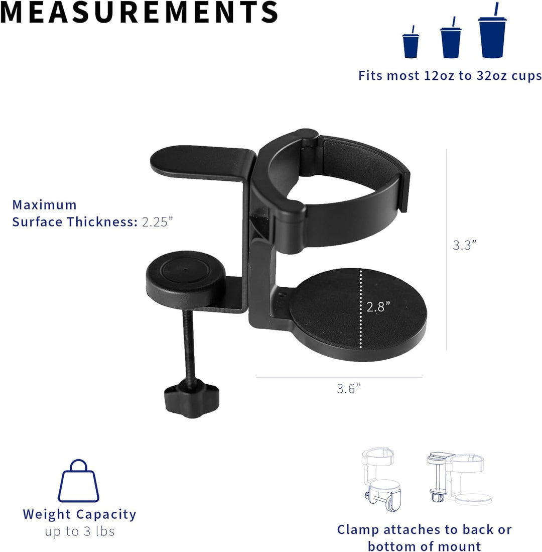 - Getränkehalter für Schreibtisch und Bettrahmen – Platzieren Sie Ihren Becher an einer praktischen Stelle mit einer verstellbaren Klemmausrichtung, die es ermöglicht, den Halter horizontal an einem Schreibtisch oder vertikal an einem Bettrahmen zu