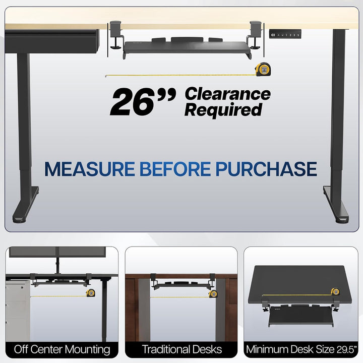 - Sparen Sie Platz auf dem Schreibtisch – diese 50,8 cm (66 cm inkl. Klemmen) x 27,9 cm Untertisch-Tastaturablage ist entworfen, um Gewichte bis zu 5 kg zu halten und bietet hervorragende Unterstützung für Ihre kleine Tastatur und Maus. Ihr kompaktes