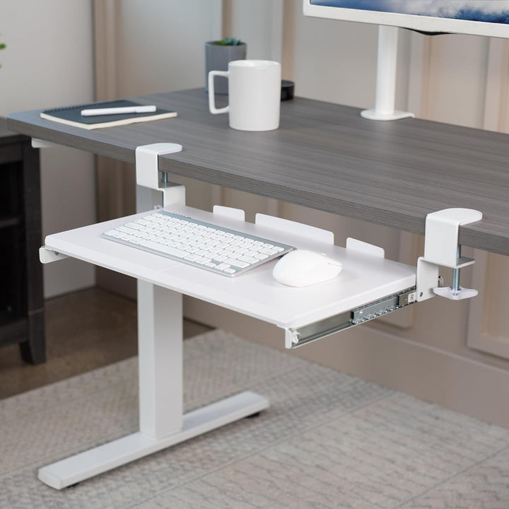 - Sparen Sie Platz auf dem Schreibtisch – diese 50,8 cm (66 cm inkl. Klemmen) x 27,9 cm Untertisch-Tastaturablage ist entworfen, um Gewichte bis zu 5 kg zu halten und bietet hervorragende Unterstützung für Ihre kleine Tastatur und Maus. Sein kompaktes