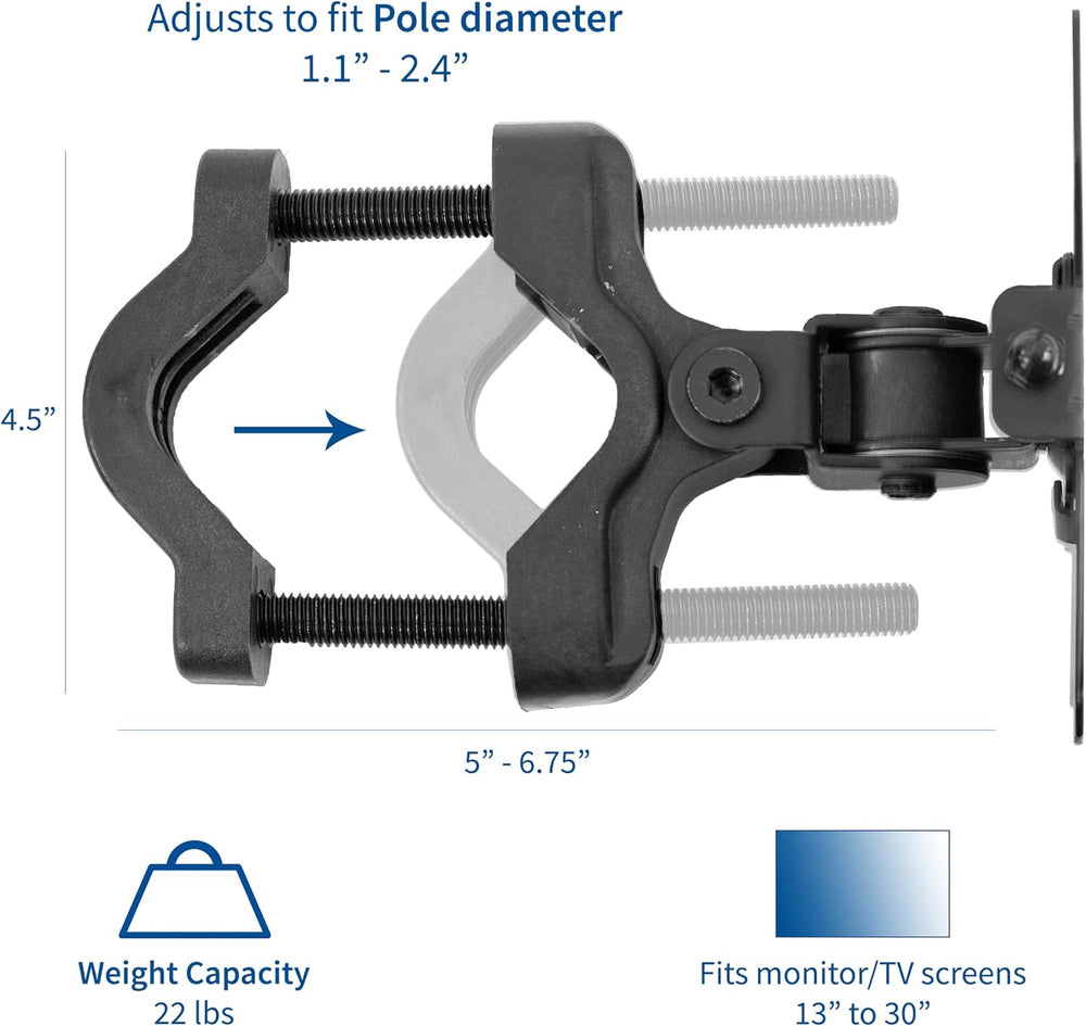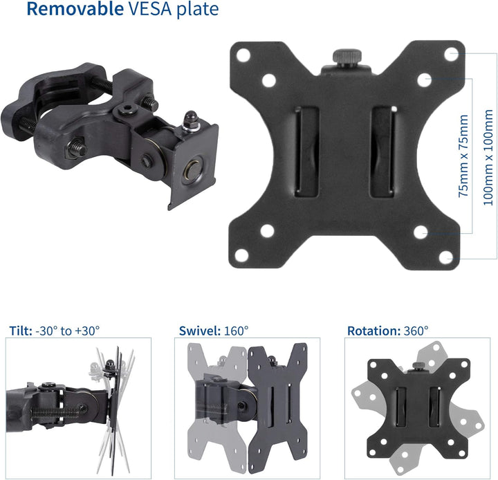 - Verstellbares Design – passend für Stangendurchmesser von 2,8 cm bis 6,1 cm. Mit dieser stabilen Halterung können Sie die VESA-Kompatibilität Ihres Monitorständers aktualisieren und alternative Befestigungslösungen für Stangen im