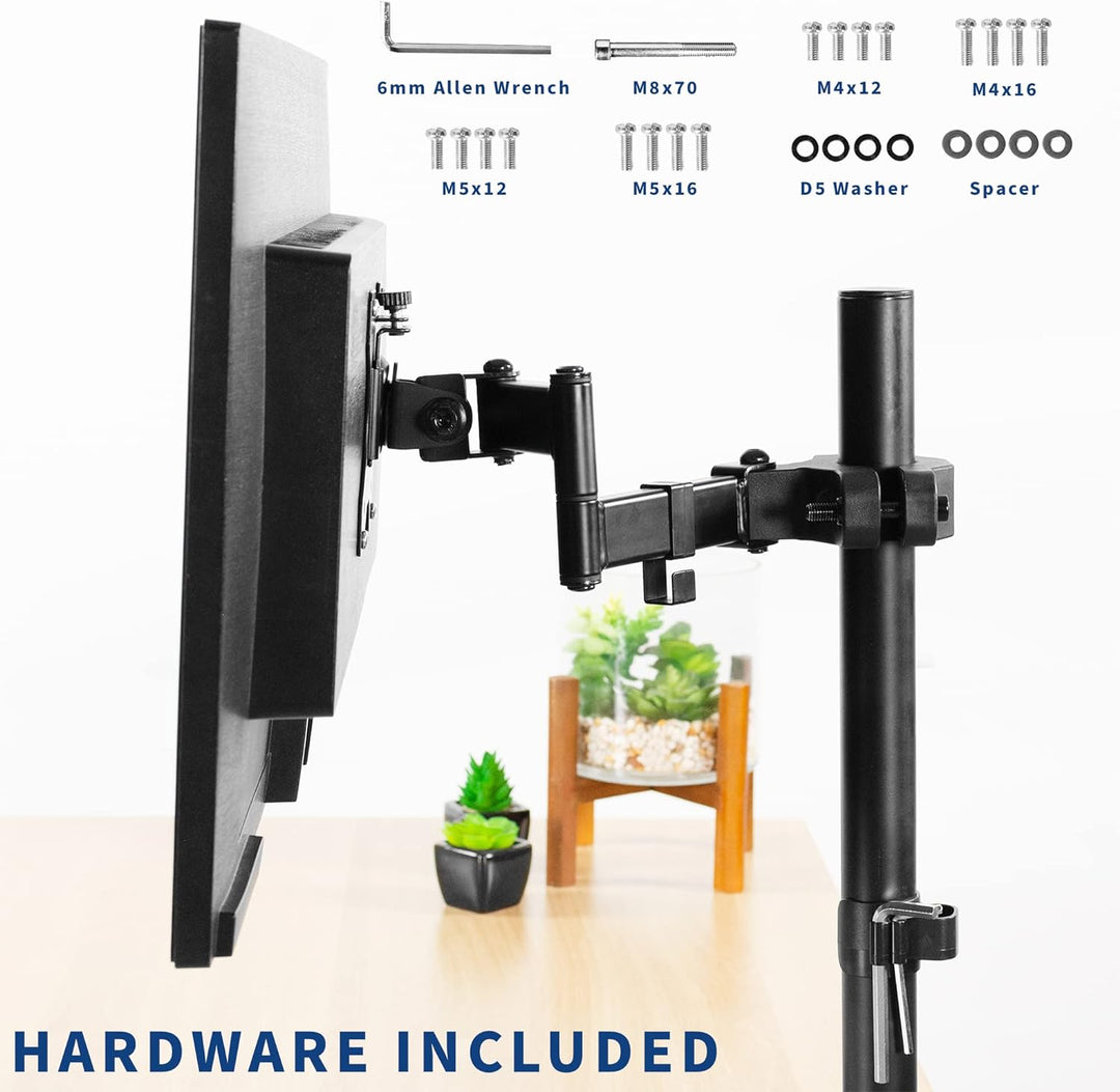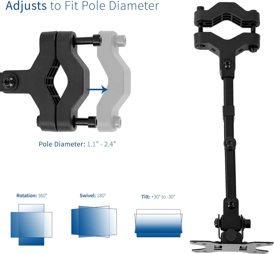 - Universelle Stangenhalterung: Dieser robuste Monitorarm aus Stahl passt auf jede Stange mit einem Durchmesser von 2,8 cm bis 6,1 cm für eine bequeme Platzierung des Bildschirms. Entwickelt für 17-32-Zoll-Monitore und Fernseher mit einem Gewicht von bis