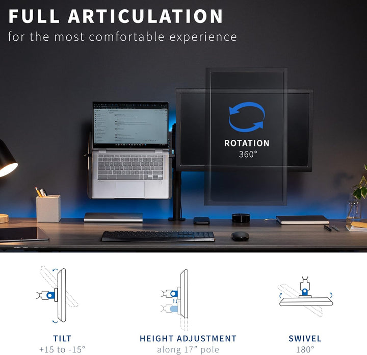 - Tischklemme "montiert auf die Rückseite Ihres Schreibtisches (bis zu 4 dick) über einen Heavy-Duty-c-clamp oder optional Tülle Halterung
