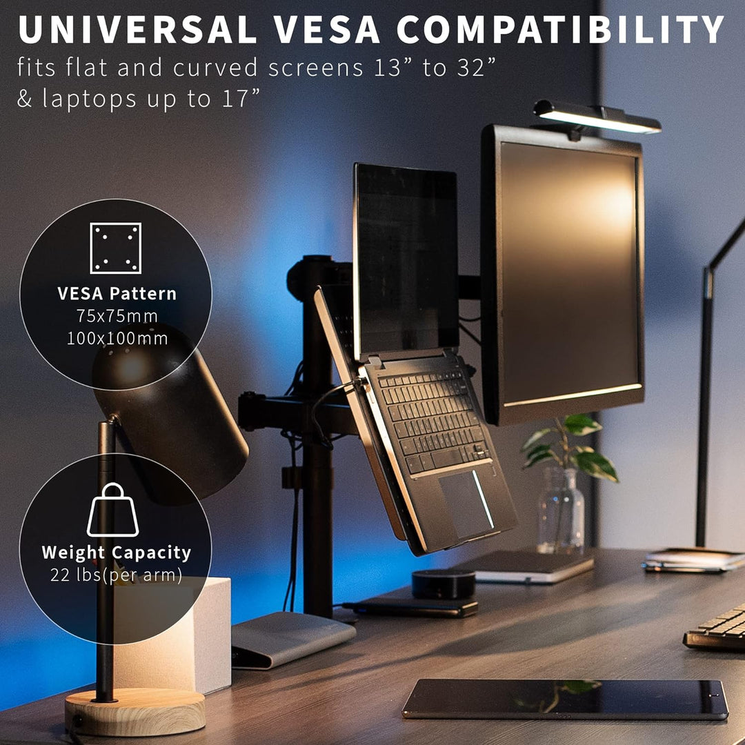 - Kompatibilität "Dual-Monitor-Fitting zwei Bildschirme 13 bis 27 in der Grösse und im Gewicht von 17,6 lbs mit 75x75mm oder 100x100mm rückseitigen Befestigungslöchern Halterung