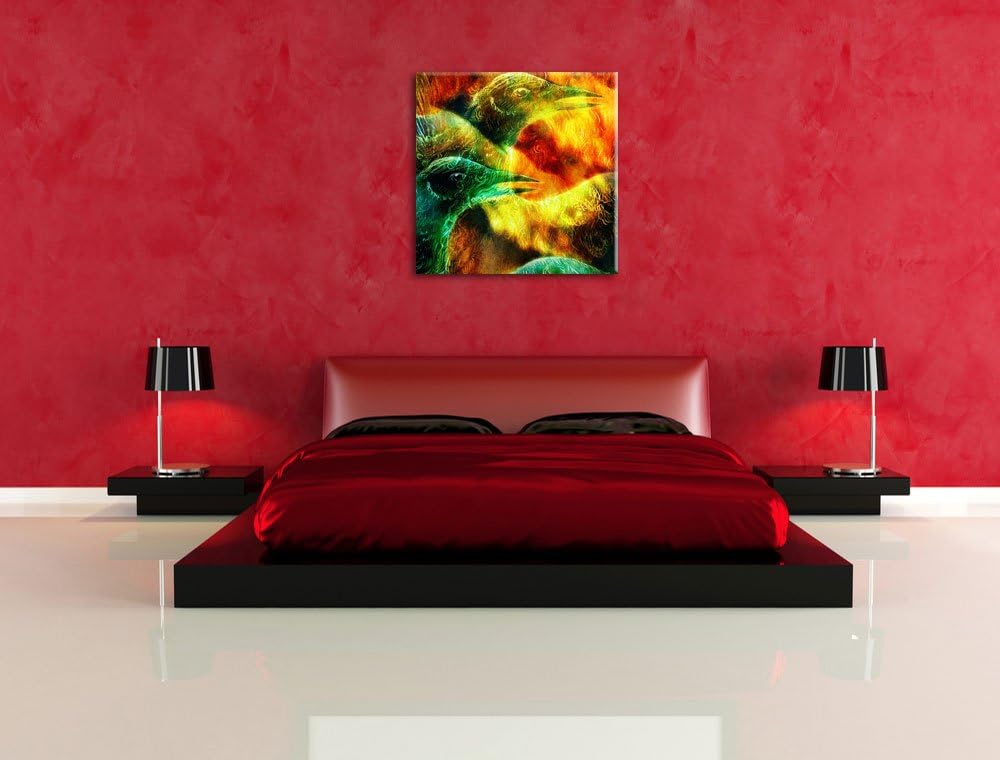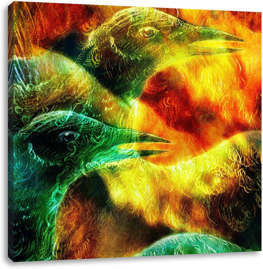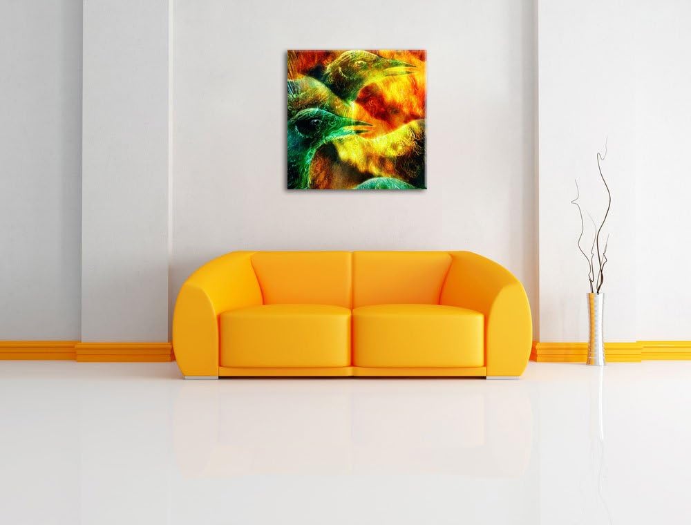 Vogel Phönix Collage, Format: 70x70 auf Leinwand, XXL riesige Bilder fertig gerahmt mit Keilrahmen,