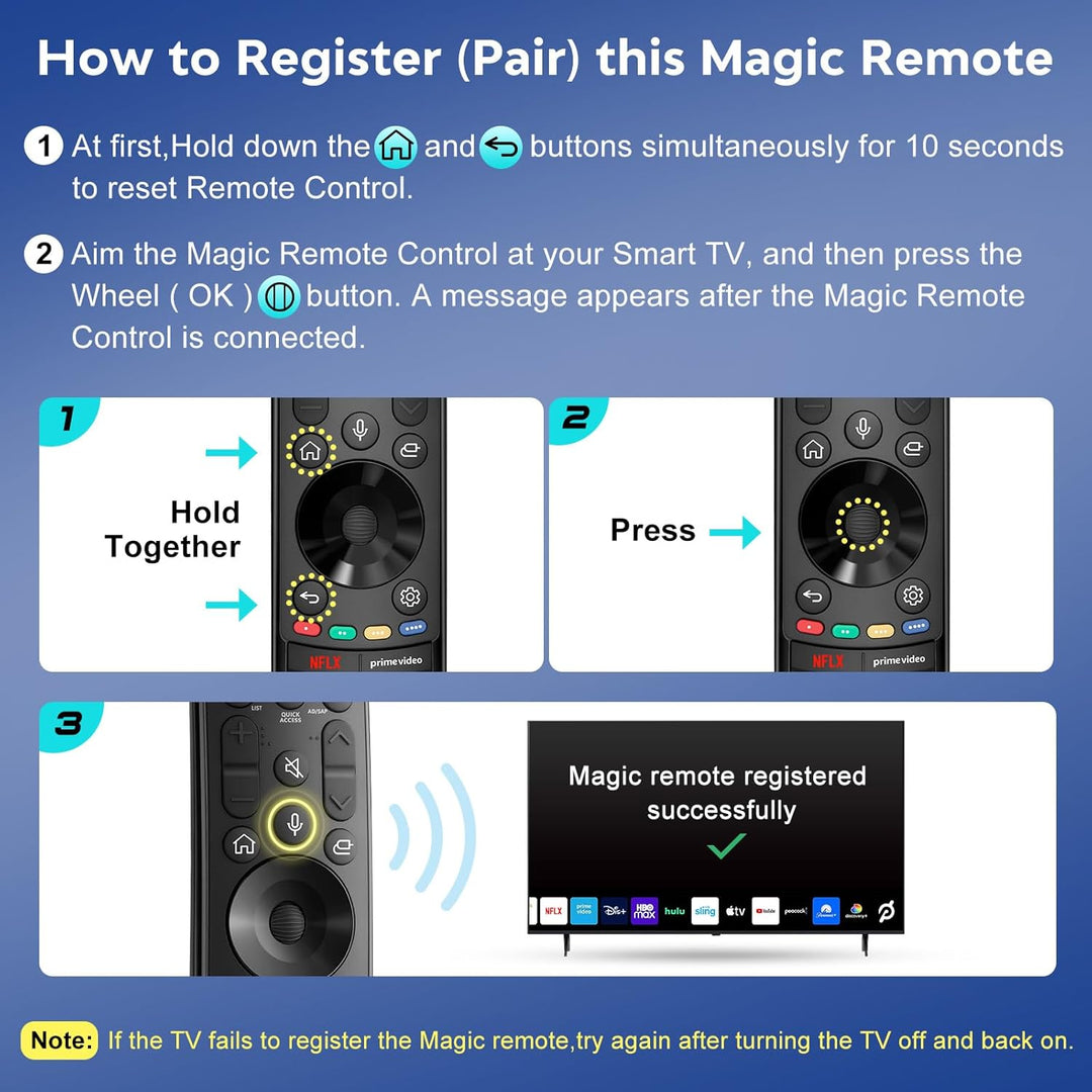 - 【Remote Kompatibilität】Kompatibel mit 2019-2023 LG Smart TV Magic Remote Modellen: AN-MR23GA,AN-MR22GA,AN-MR21GA,AN-MR20GA, MR19BA, MR18BA