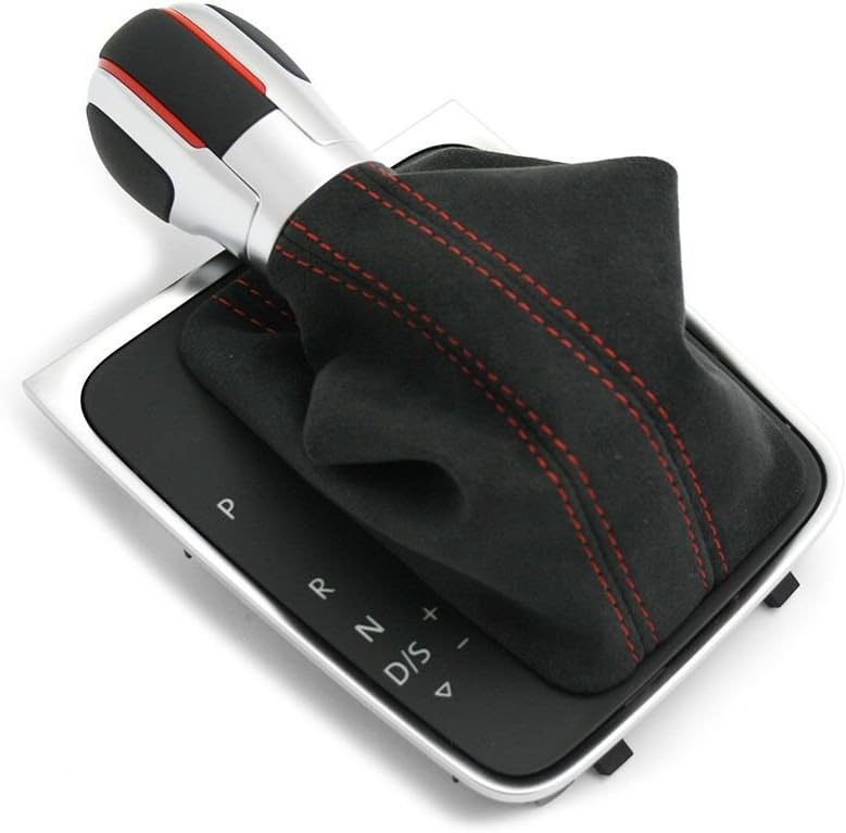 - Entriegelungsknopf vorn, Schalthebelverkleidung in Alcantara mit roter Naht, Knauf in Echtleder, Farbe: Aluminium Optik, schwarz und flashrot