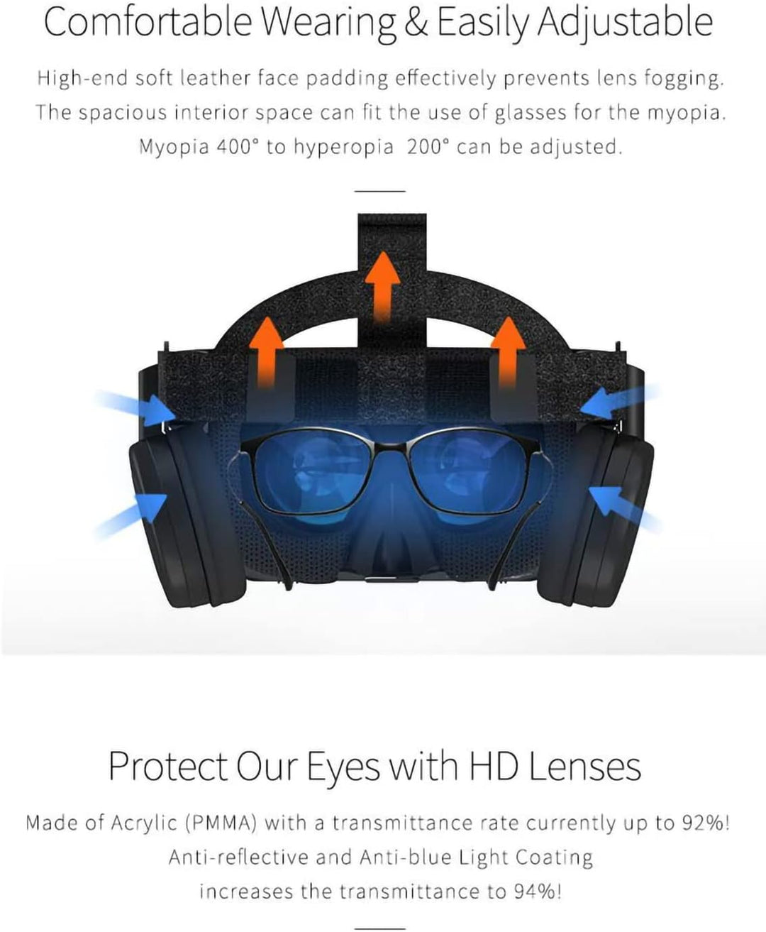 - 【Grosse IMAX 3D IMMERSIF】 Asphärische optische Schutzlinse für grosse Augen mit 110 ° FOV Augen; mehrfach verbessert, beschichtet und poliert; bessere Wiederherstellung eines klaren HD-Bildes für Sie ohne Verzerrung, Verdrehungen oder Müdigkeit.