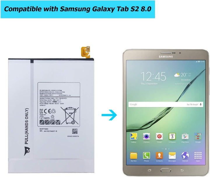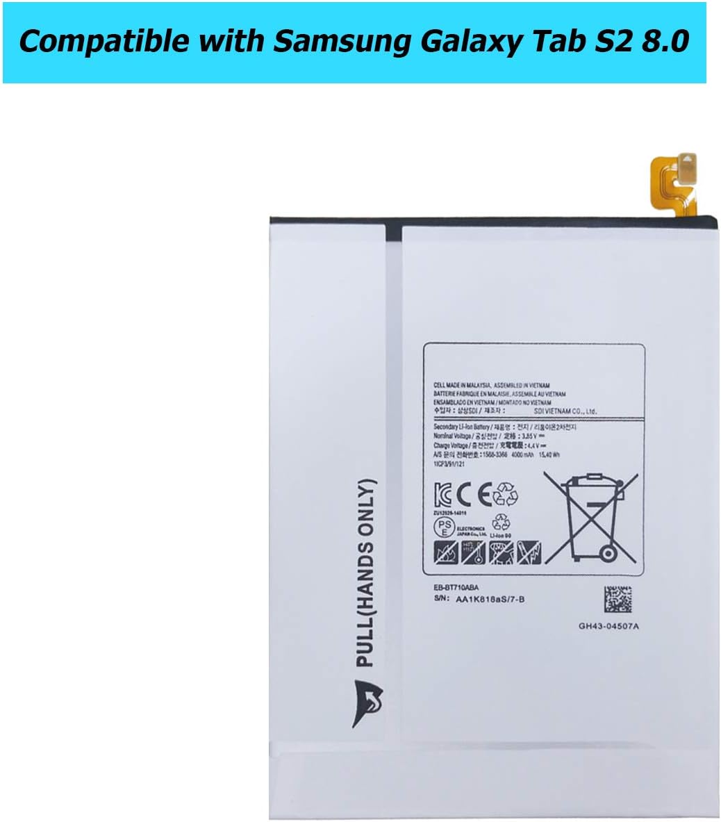 - Diese Batterie ist speziell für Samsung Galaxy Tab S2 8,0 LTE-A SM-T710 SM-T715 SM-T715C SM-T715N0 SM-T715Y konzipiert, sie kann Ihre alte Batterie ersetzen, Tech-Skills können beim Austausch der Batterie gelten.