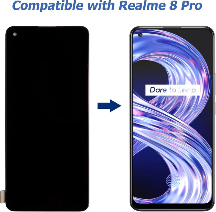 - Dieser Bildschirm ist speziell für Realme 8 Pro RMX3081 konzipiert, es kann Ihren alten Bildschirm ersetzen, Tech-Skills können gelten, wenn der Bildschirm ersetzt wird.