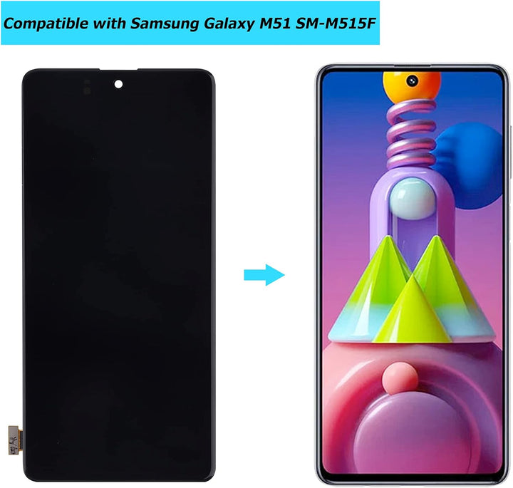 - Dieser Bildschirm ist speziell für Samsung Galaxy M51 SM-M515F konzipiert, es kann Ihren alten Bildschirm ersetzen, Tech-Skills können gelten, wenn der Bildschirm ersetzt wird.
