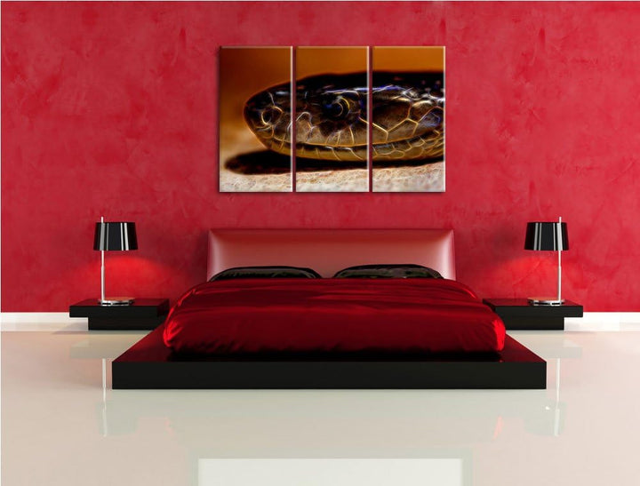 wachsame Natter NewArt 3-Teiler Leinwandbild 120x80 Bild auf Leinwand, XXL riesige Bilder fertig ger