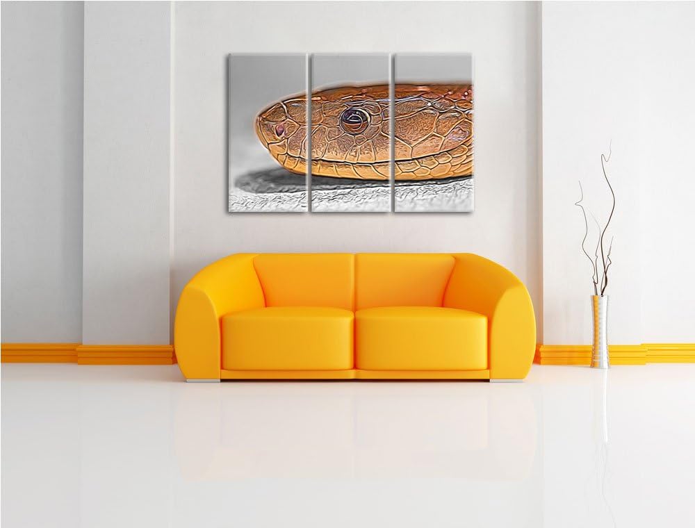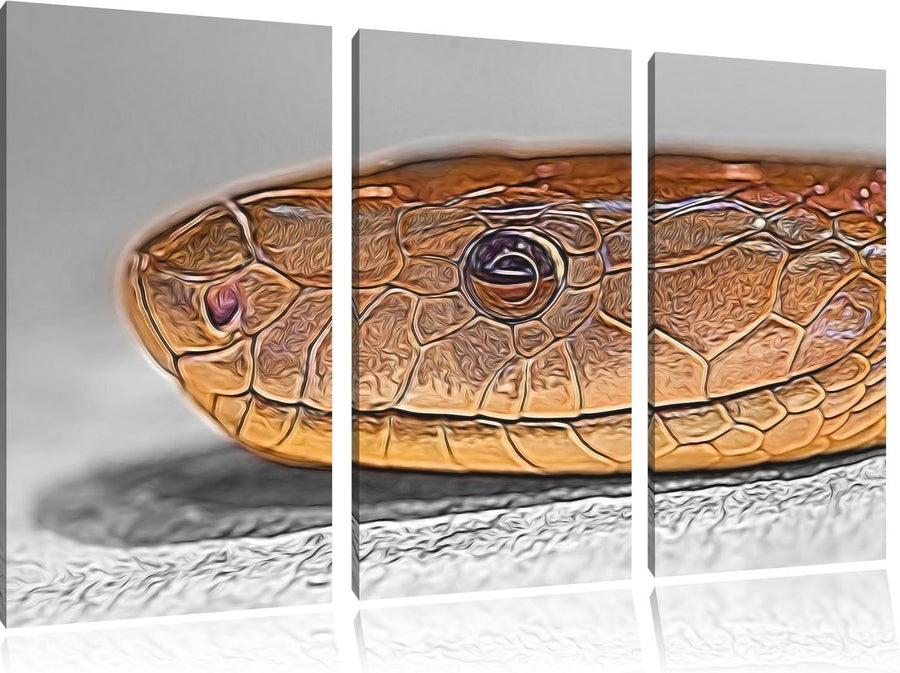 wachsame listige Natter schwarz/weiss Deluxe 3-Teiler Leinwandbild 120x80 Bild auf Leinwand, XXL rie