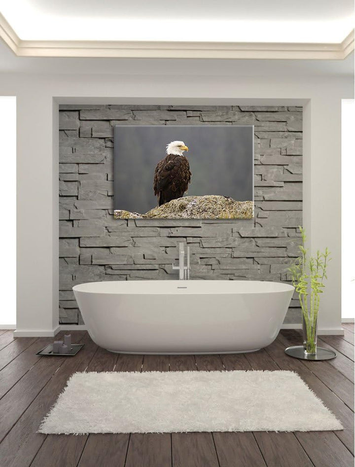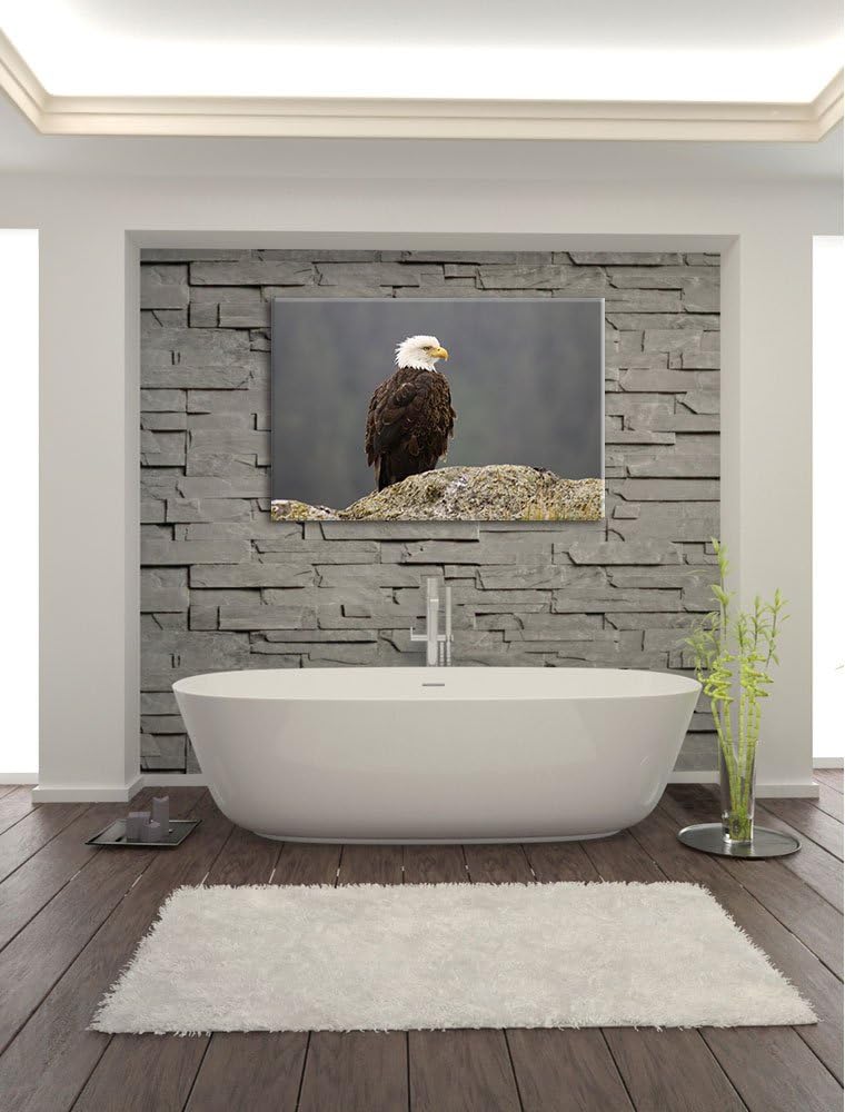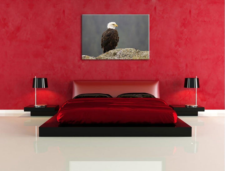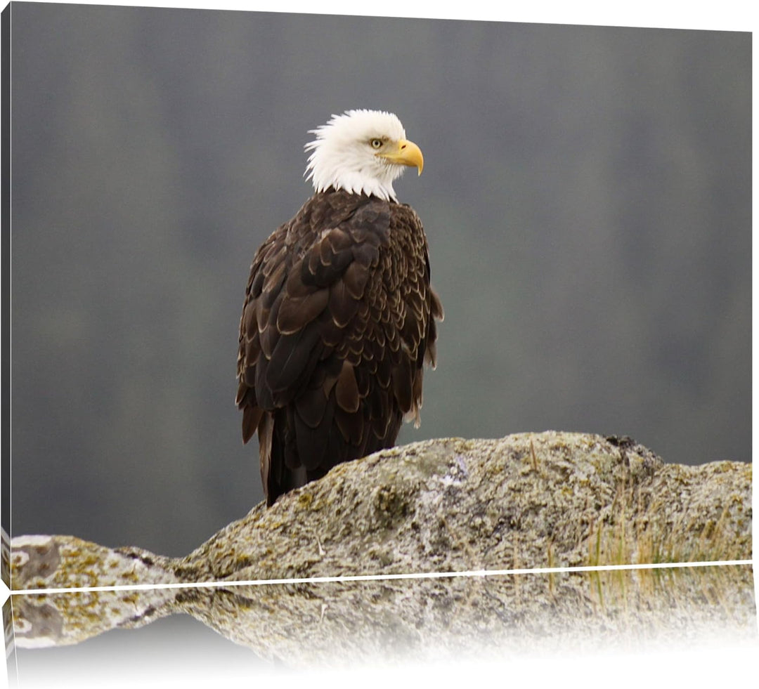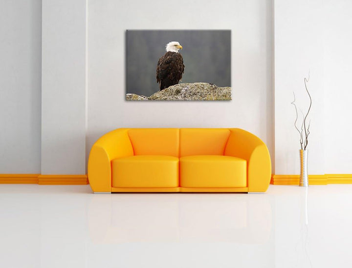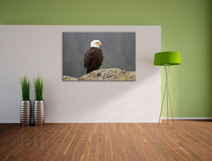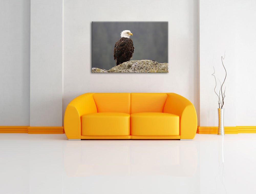 wachsamer Adler auf Fels Leinwand, XXL riesige Bilder fertig gerahmt mit Keilrahmen, Kunstdruck auf