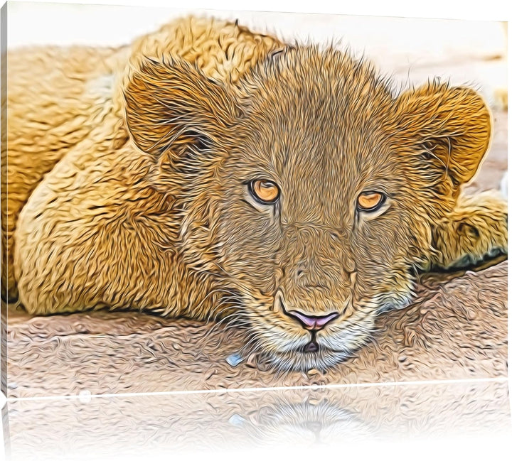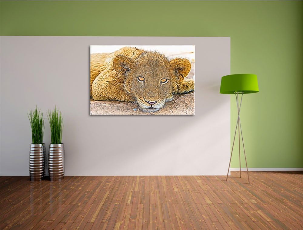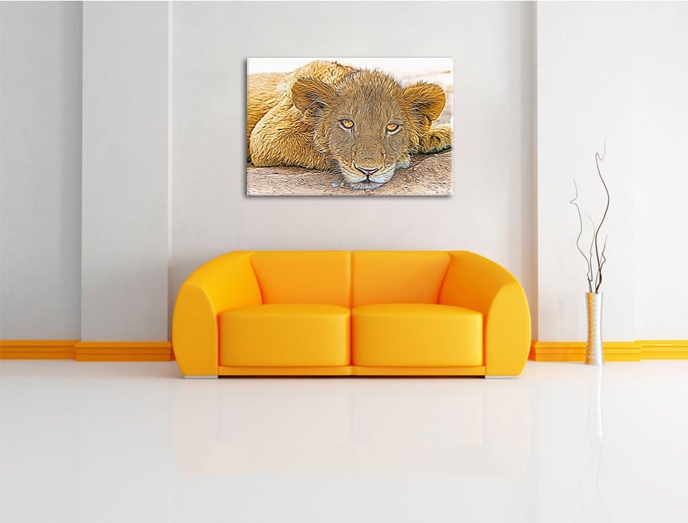 wachsamer junger Löwe Deluxe Format: 100x70 cm auf Leinwand, XXL riesige Bilder fertig gerahmt mit K