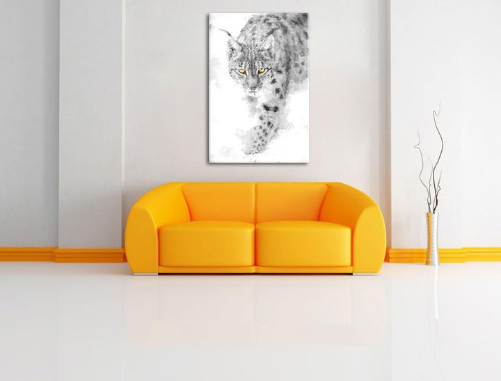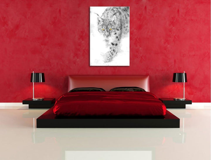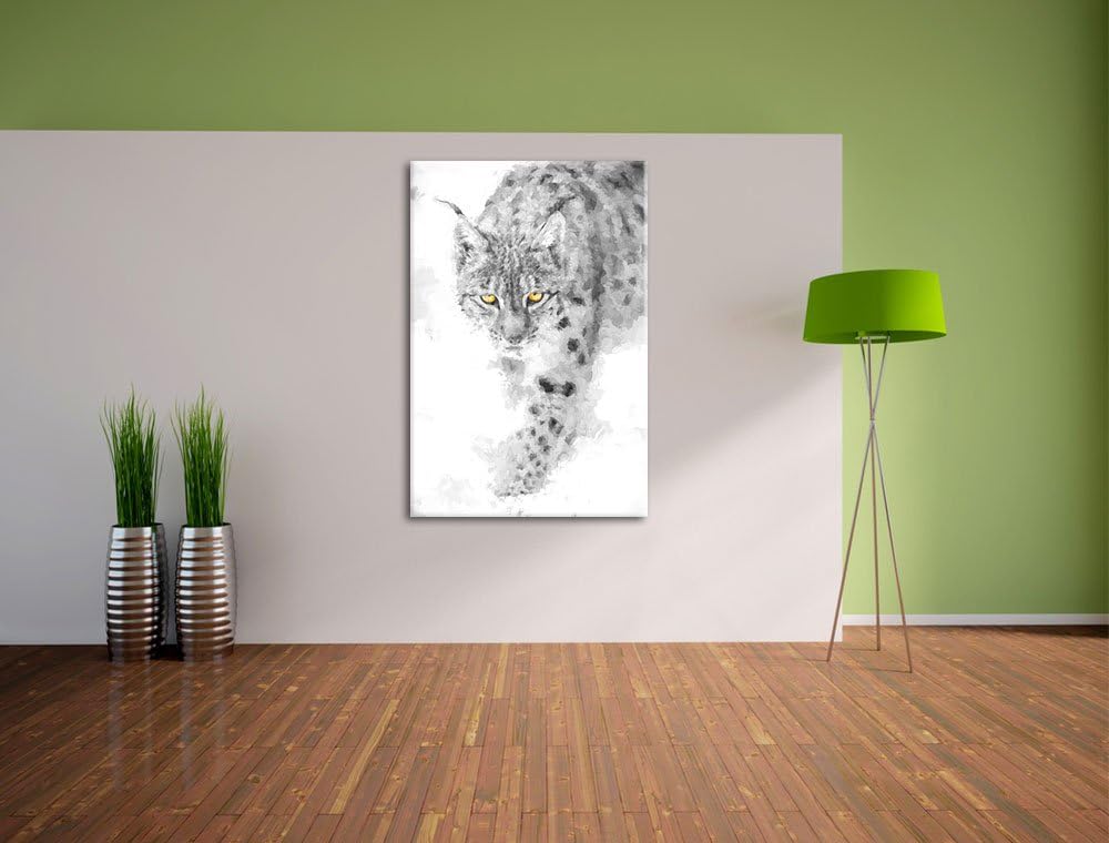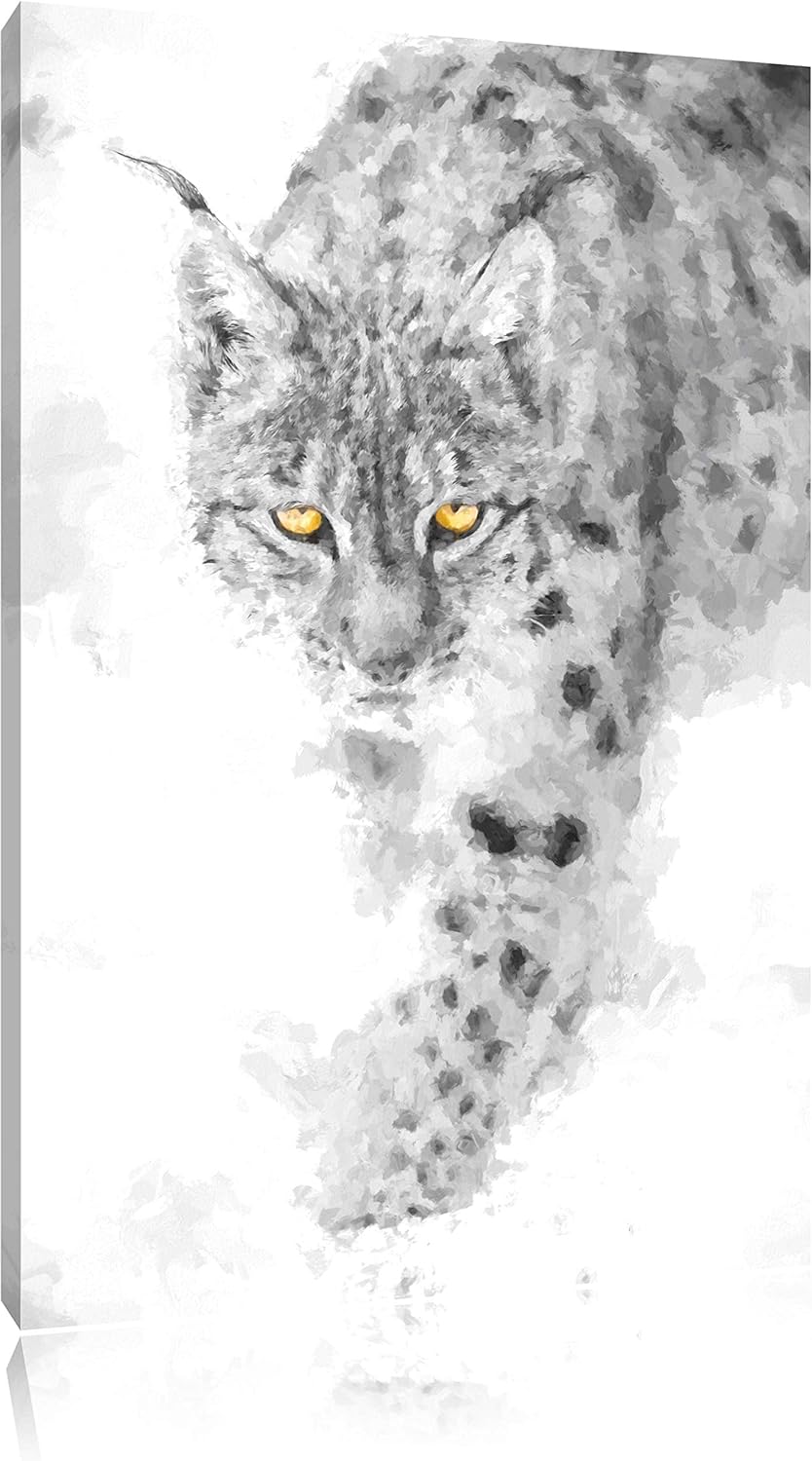 wachsamer Luchs im Schnee schwarz/weiss Deluxe Format: 100x70 cm auf Leinwand, XXL riesige Bilder fe